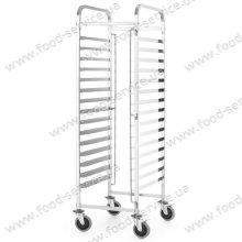 Візок Saro Liam виготовлена з нержавіючої сталі. Максимальна кількість листів - 18 шт. Розмір листа 600х400. Укомплектована 4 поворотними колесами, 2 з яких мають гальмо. Максимальне завантаження продукції на візок 150 кг. Відстань між ярусами 75 мм. Поставляється в розібр..