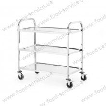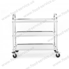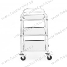 Візки сервірувальні з 3-ма полками застосовуються для транспортування продуктів, готових страв в гастроємностях, напоїв, посуду на підприємствах громадського харчування, їдальнях, ресторанах, готелях і т.п. Візки виготовлені з нержавіючої сталі марки AISI 201 і мають міцну конструкцію. Для за..