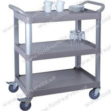 Візки сервірувальні з 3-ма полками SARO ZENJA призначені для переміщення на підприємствах громадського харчування продуктів, готових страв, напоїв, і посуду, а також для подачі брудного посуду з залу в мийне відділення. Полки візка виготовлено з міцного пластику, стійки виготовлені з алюмінію.  4 колеса. Пара коліс візка сервірувального додатково забезпечена блокуванням. Полки візка знімні і при необхідності легко збираються.  Вантажопідйомність візка – 100 кг .   Прекрасний дизайн візків дозволяє використовувати їх як в ресторанах, їдальнях, так і в готельному бізнесі. Поставляється в розібраному вигляді, що здешевлює вартість доставки візка при відправці транспортними перевізниками.