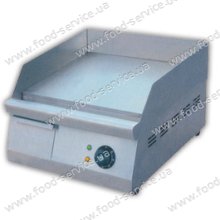 Електричний прилад для приготування їжі на маслі або без масла. Корпус з нержавіючої сталі, комбінована поверхня для смаження з нержавіючої сталі, підданої піскоструминної обробці, термостати для регулювання температури + 50 ° ... + 270 ° C, піддон для збору жиру. Існує можливість незалежного регулювання і включення половини жарочной поверхні.