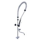 Змішувач на 1 отвір з душуючим пристроєм з додатковим краном використовується для встановлення на горизонтальну поверхню мийної ванни до професійної посудомийної машини та для миття овочів та фруктів. Виготовлений з нержавіючої сталі. Підключається до гарячої та холодної води. Шланг с..