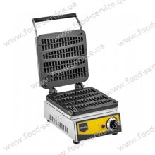 Однопостовая, квадратная. 4 объемные вафли в форме елочки. Нагрев осуществляется одновременно сверху и снизу. Терморегулятор 0-300 С. Устойчивое основание. Мощность ТЭНа 1,2 кВт.