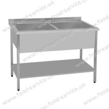Ванна моечная 1200х600х850мм на две секции изготовлена из нержавеющей стали и имеет полку снизу. При заказе моек с полкой учитывайте размеры сифона и уровень слива канализации.  Рабочая поверхность мойки выполнена из сертифицированной нержавеющей стали марки 201 (аналог 304). Данная технологическая мебель применяется в сфере пищевой промышленности и является неотъемлемой составляющей на кухне любого ресторана, кафе, бара, столовой и т.п. Ванны моечные изготавливаются под заказ в широком ассортименте из высококачественной нержавеющей стали. Все изделия долговечны, абсолютно гигиеничны и эстетичны. Основные характеристики: