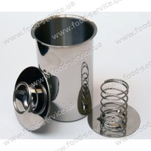 Ветчинница являет собой цилиндрическую пресс-форму для приготовления в домашних условиях, а также на небольших производствах, кулинариях, кафе и ресторанах ветчины, куринных и рыбных рулетов, сальтисонов, прессованного мяса и других полезных и вкусных деликатесов. Можно использовать различные сорта мяса или рыбы, фарш, начинять ветчину оливками, перцем, яйцом, морковью, сыром, грибами ...  Принцип действия ветчинницы: мясо при уваривании, теряет в объеме, поэтому ветчина будет сдавливаться в ветчиннице пружиной. Это позволит приготовить ветчину идеальной формы, такая ветчина не развалится после вынимания из формы. Выход продукта из ветчинницы объемом 3,0 л - 2,5 кг. В центре крышки предусмотрено отверстие, через  которое можно поместить термометр со щупом для прямого измерения текущей температуры мяса. Термометр не входит в комплект и продается отдельно.