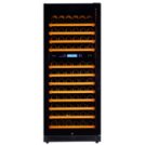 Винный шкаф SARO WK 162D с динамическим охлаждением. Металлический корпус с пластифицированным покрытием черного цвета. Внутренняя отделка из пластика. Объем 379л, вместительность - 154 бутылки. Имеет 2 температурные зоны: +5+12°C и +12+20°C. Дверь с тонированным стеклом. 8 деревянных полок (регулируемых по высоте). 2 ножки и 2 ролика для перемещения. Внутрення LED подсветка(белая). Цифровой регулятор температуры. Хладагент: R600a.