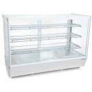 Холодильная витрина GoodFood RTW235L5 белая кондитерская настольная с полками. Корпус белый изготовлен из стекла белого и прозрачного.   Фронтальное стекло – прямое. Верхняя светодиодная (LED) подсветка. Хромированные полки. Цифровая п..