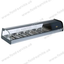 Холодильная витрина для топпинга GoodFood GF-VRX1800/330-H6C используется для кратковременного хранения и демонстрации салатов, закусок, гарниров и других блюд. Корпус выполнен из нержавеющей стали.   Гастроемкость 8хGN1/4. Максимальная высота гастроемкости 150 мм. Компре..