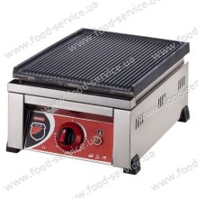 Электрический прибор для приготовления пищи на масле или без масла. Корпус из нержавеющей стали, комбинированная жарочная поверхность из нержавеющей стали, подвергнутой пескоструйной обработке, термостаты для регулировки температуры +50°...+270 °C, поддон для сбора жира. Существует возможность независимой регулировки и включения половины жарочной поверхности. Это оборудование применяется в ресторанах с восточной и западной кухней, ресторанах быстрого обслуживания, кафе и барах.